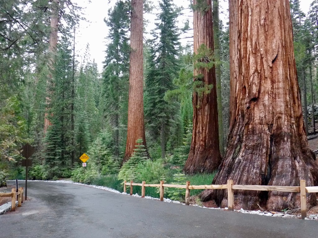 Heading into the evening as we got back to the van, we drove to the south end of the park where the infamous sequoias are. Before we got there however, we stopped at a vista point near Bridalveil Falls. This probably wasn’t the best idea we had on the trip but it led to a pretty fun memory. As we were walking up the trail, the rushing waterfall became more intense. By the time we reached the point, you couldn’t even look up because of the back splash of the falls onto the path. I tried staying a few seconds to get some photos (with my luckily waterproof camera) but that didn’t last too long. Within the literal minute that we were there, we were completely soaked.