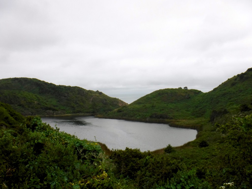 We walked along the ocean up on a cliff for awhile and then through the woods that were littered with plants on plants – tons of ferns and huge trees. There was some mild elevation change but enough to where we stopped multiple times to cool off and drink some water. Closer to our destination was a cool ‘mountain lake’ where you could see the ocean in the distance through a break in the land. To tell you where we actually ended up, Alamere Falls is a freshwater waterfall actually known as a tidefall that drops about 30 feet over a shale cliff into the ocean.