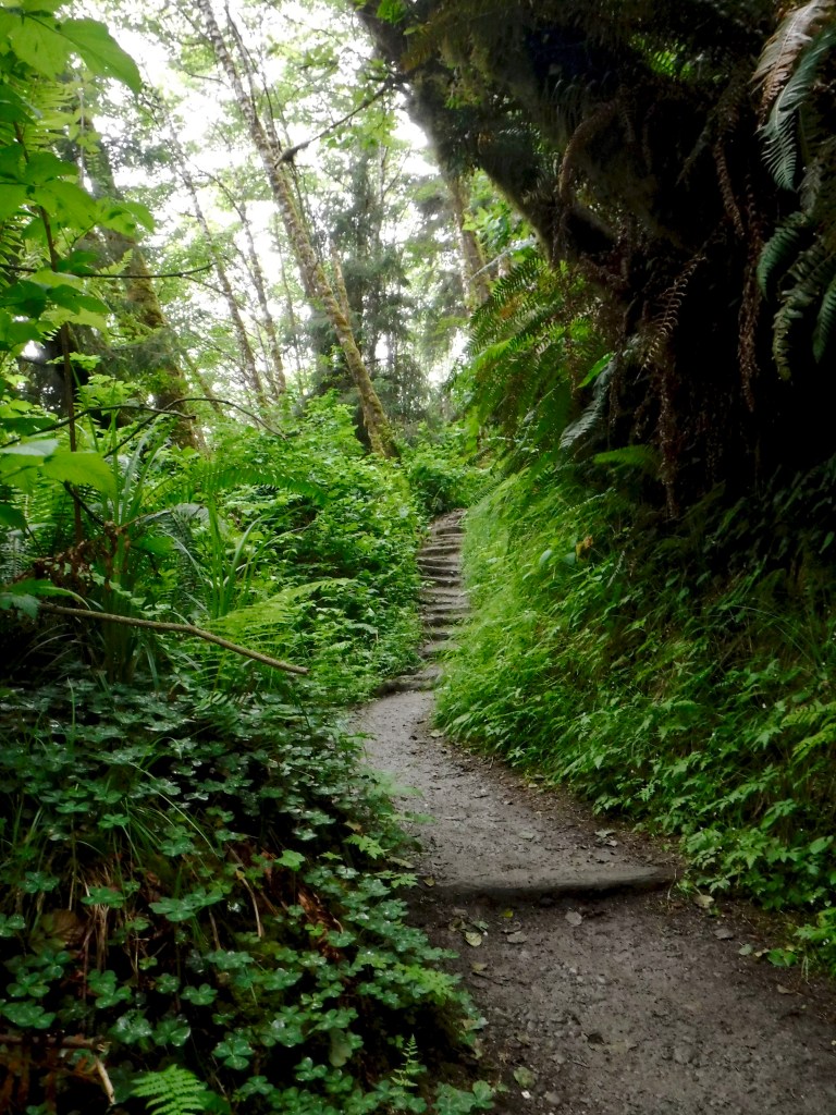 There’s a campground on the road leading away from the canyon where we were able to stop and take a nice shower after a hot, humid day of hiking. Somewhere along the way I also thought I saw a whale and made Michael turn back to an ocean pull off where we indeed did not see a whale. After another eventful day of hiking through some old trees and driving along the ocean we drove into Crescent City and called it a night.